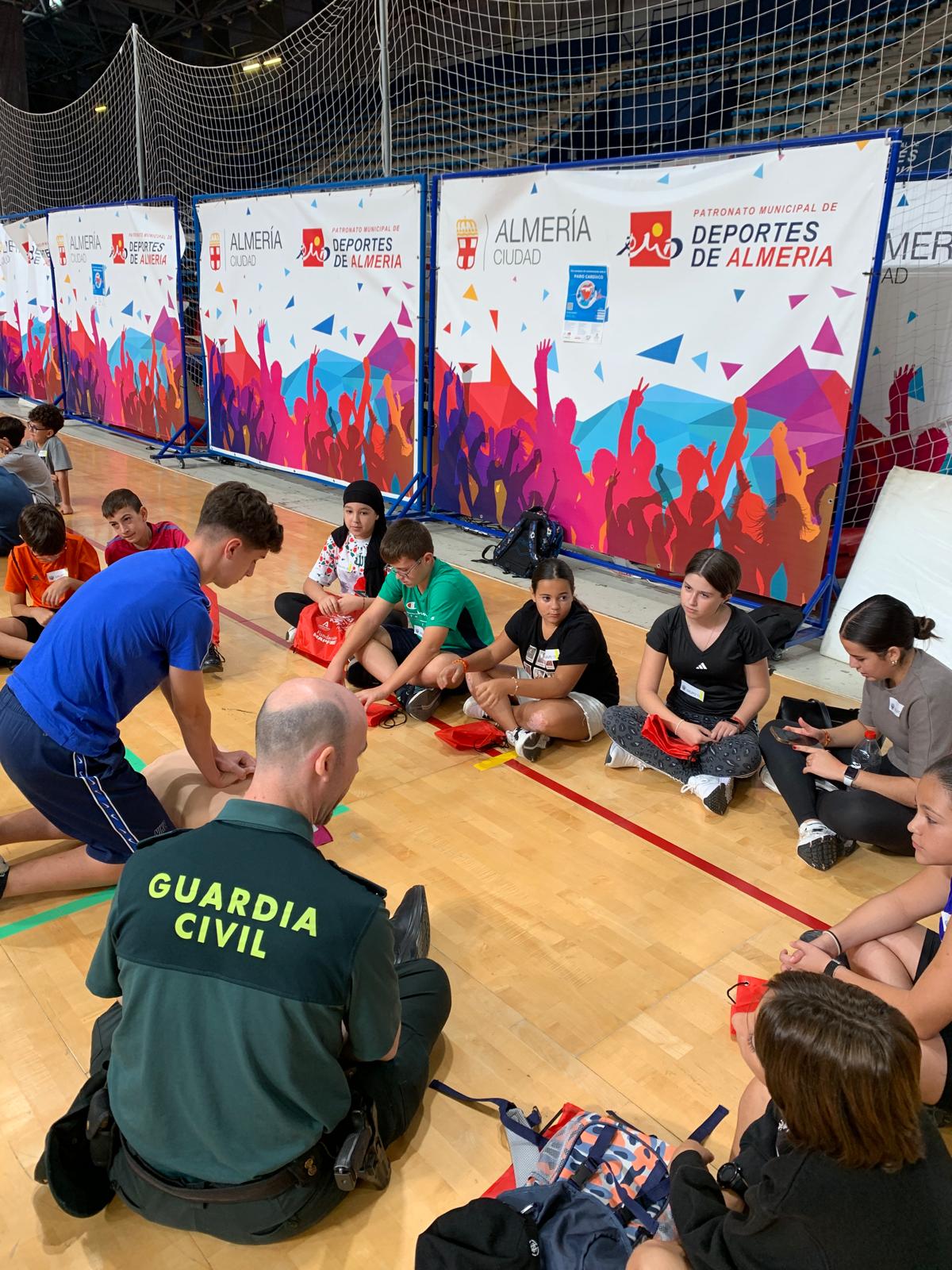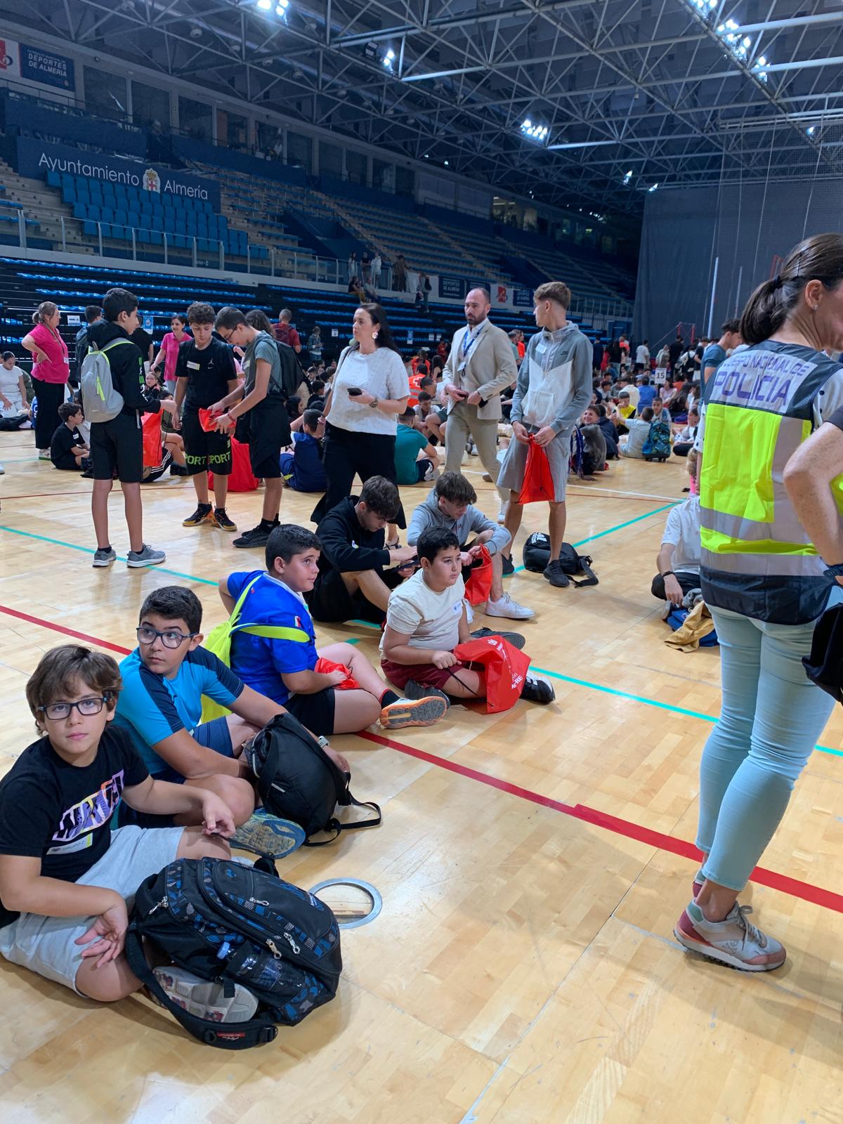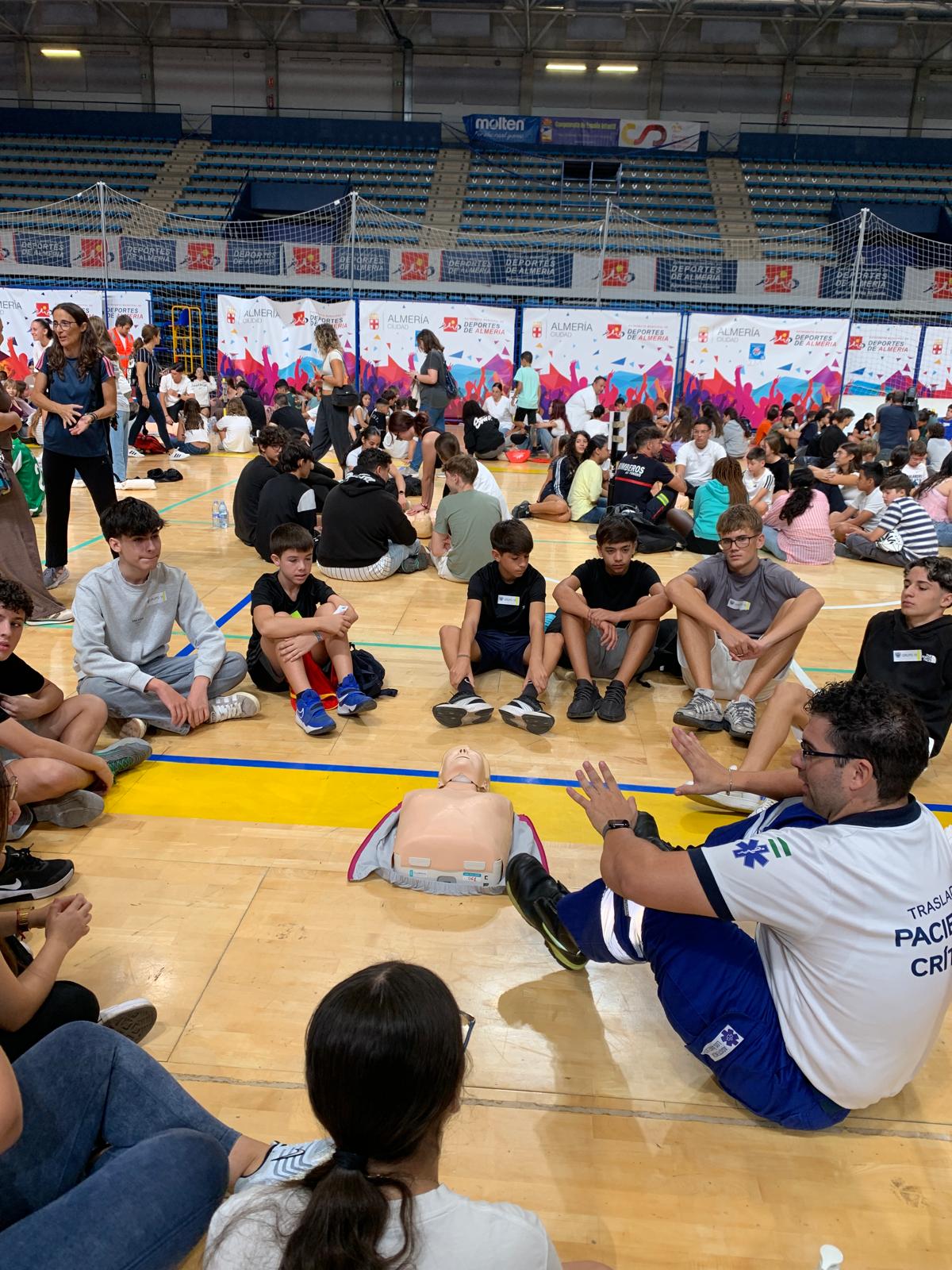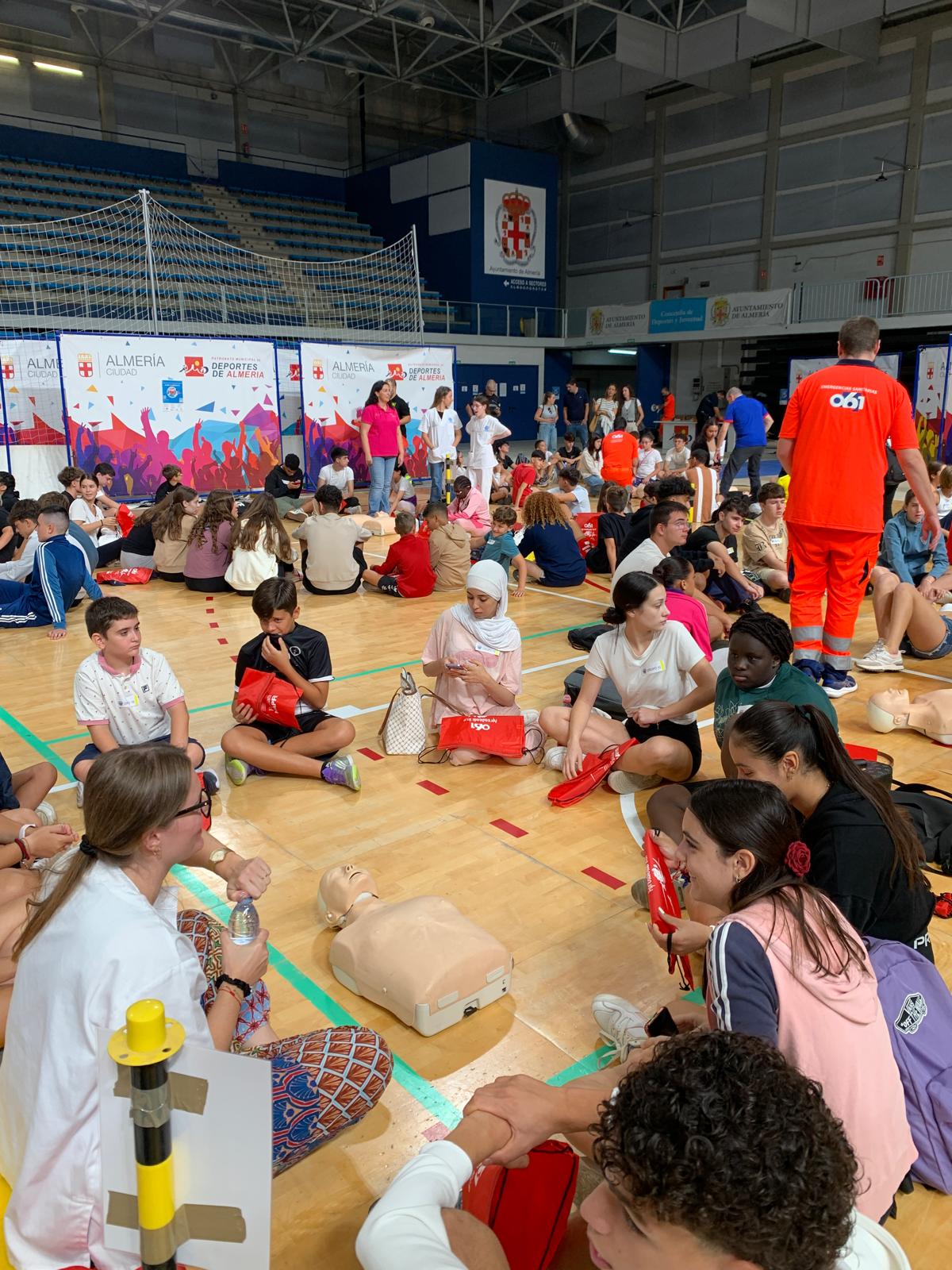 El jueves, 16 de octubre, 53 discentes de primero de la ESO han participado en el Caridiomaraton 2025, en el Palacio de los Juegos Mediterráneos. Dicha actividad, ha reunido a multitud de escolares, que han recibido un taller de primeros auxilios de la mano de enfermeros, policías, militares, entre otros cuerpos allí presentes. Le han enseñado cómo se debe actuar en situaciones como el atragantamiento, accidentes con personas inconscientes, entre otras cosas, conocimientos que pueden salvar vidas humanas. Hemos salido a las 8:30, aproximadamente, del centro escolar, y hemos llegado sobre las 9:15 h. a la Universidad de Almería.