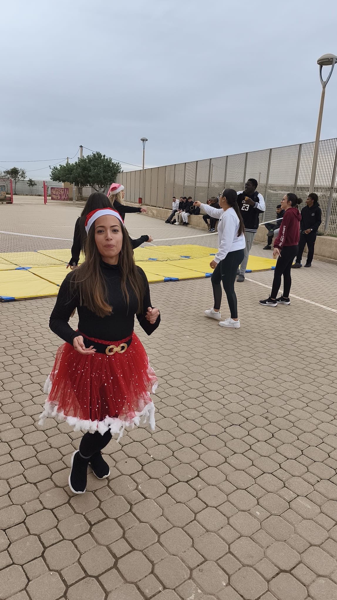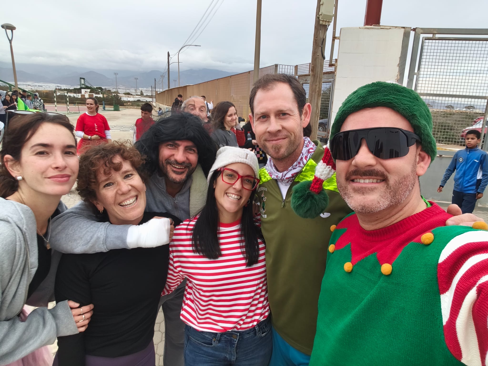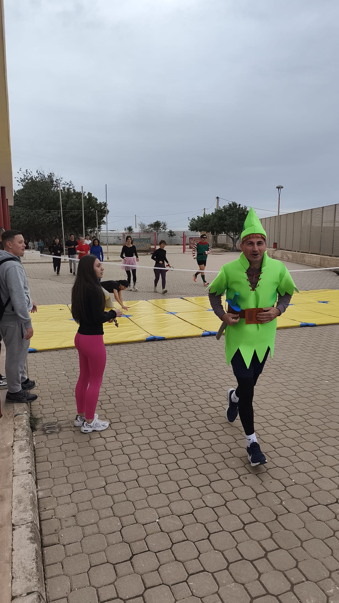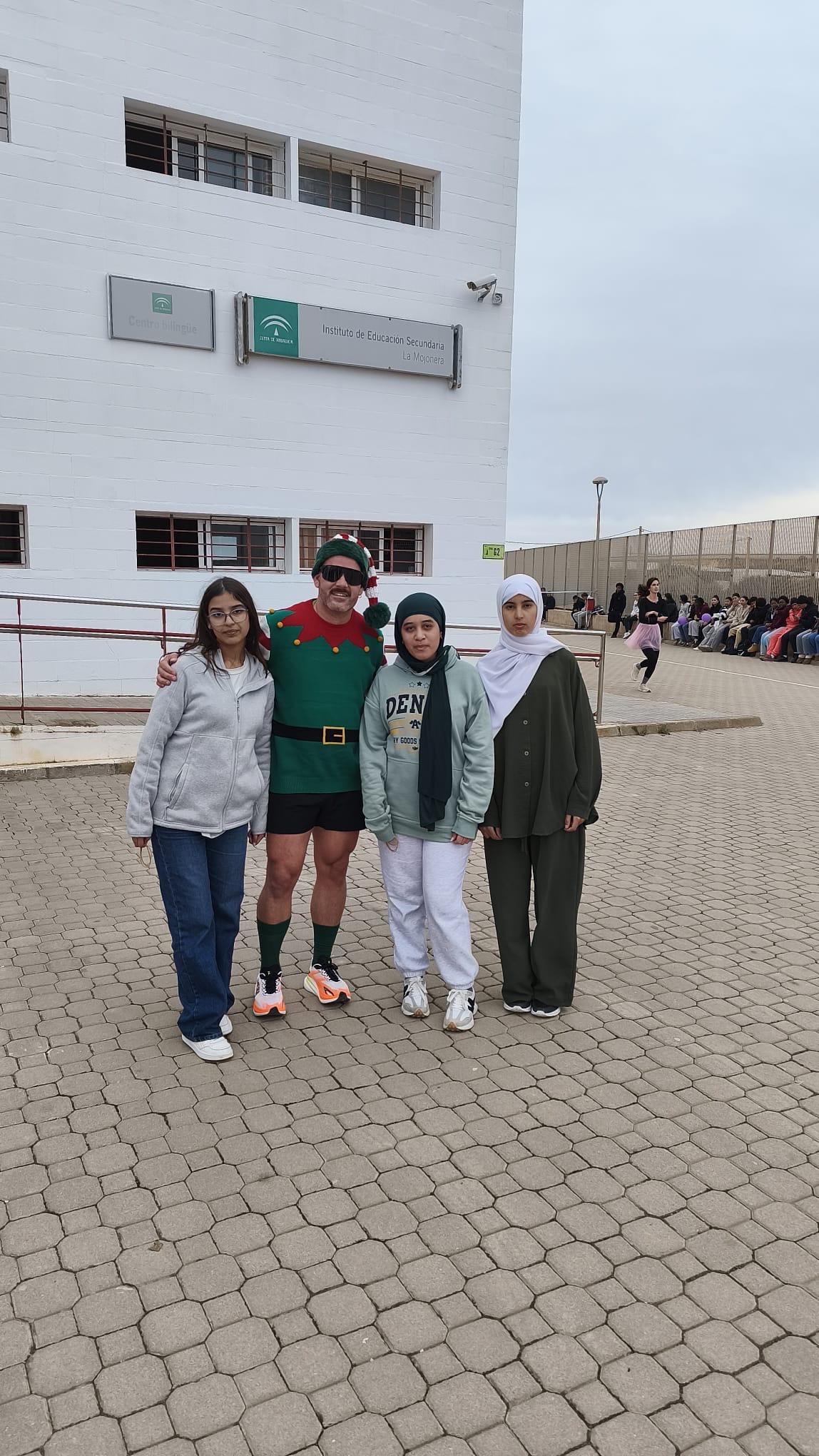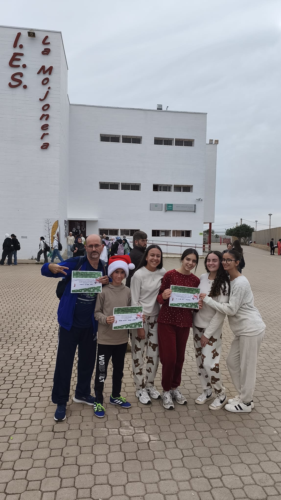 «Un año más, el centro organiza la Carrera San Silvestre el último de día de clase antes de las vacaciones de Navidad. Se trata de la tercera edición, donde el alumnado y el personal del centro se han disfrazado para echar un buen rato y participar en esta actividad de convivencia diferente y divertida. Además hubo premios al mejor disfraz y al más rápido. Agradecimiento especial al departamento de Educación Física por organizar el recorrido incluyendo algunos obstáculos para disfrutar aún más del evento.»