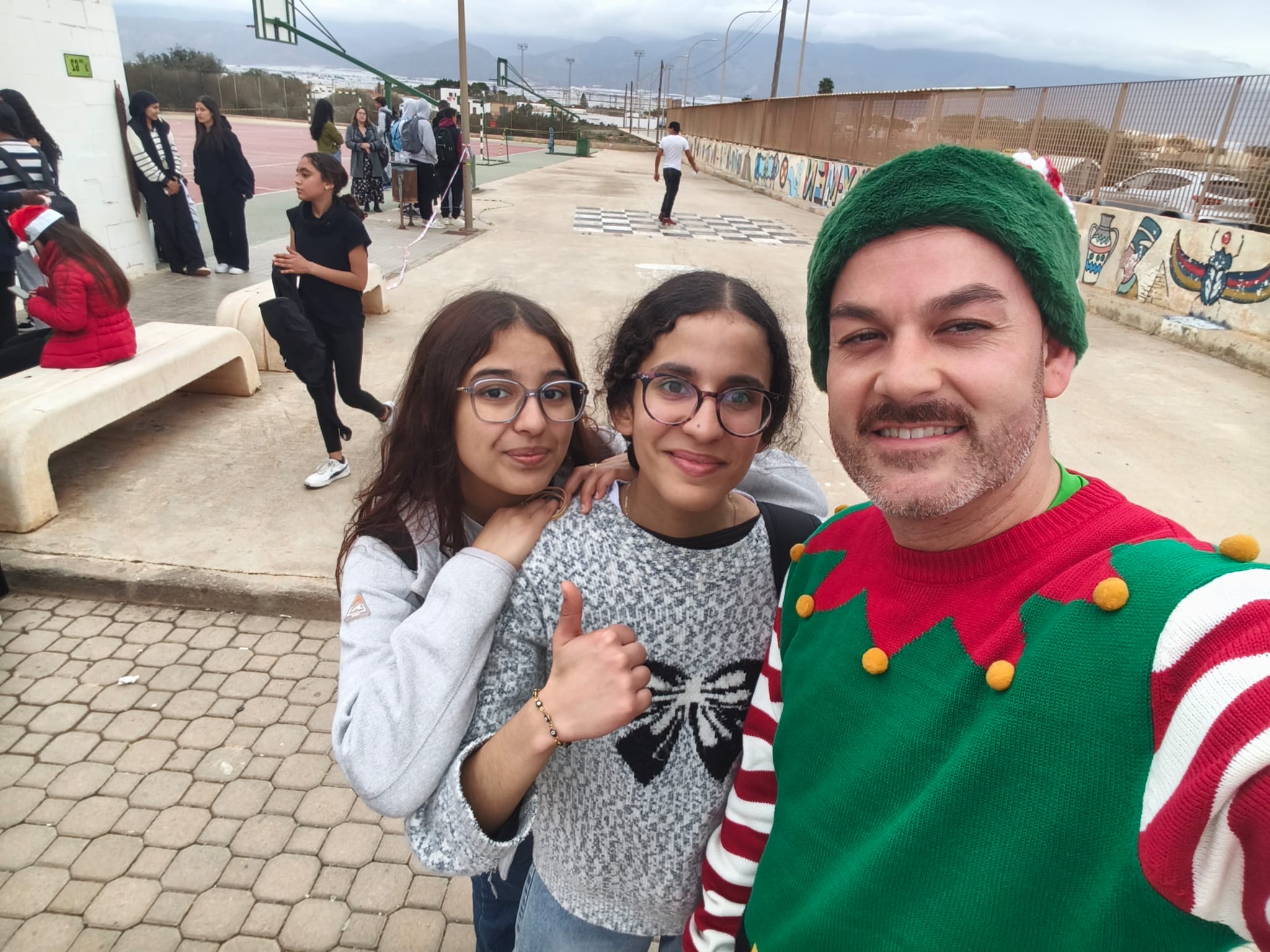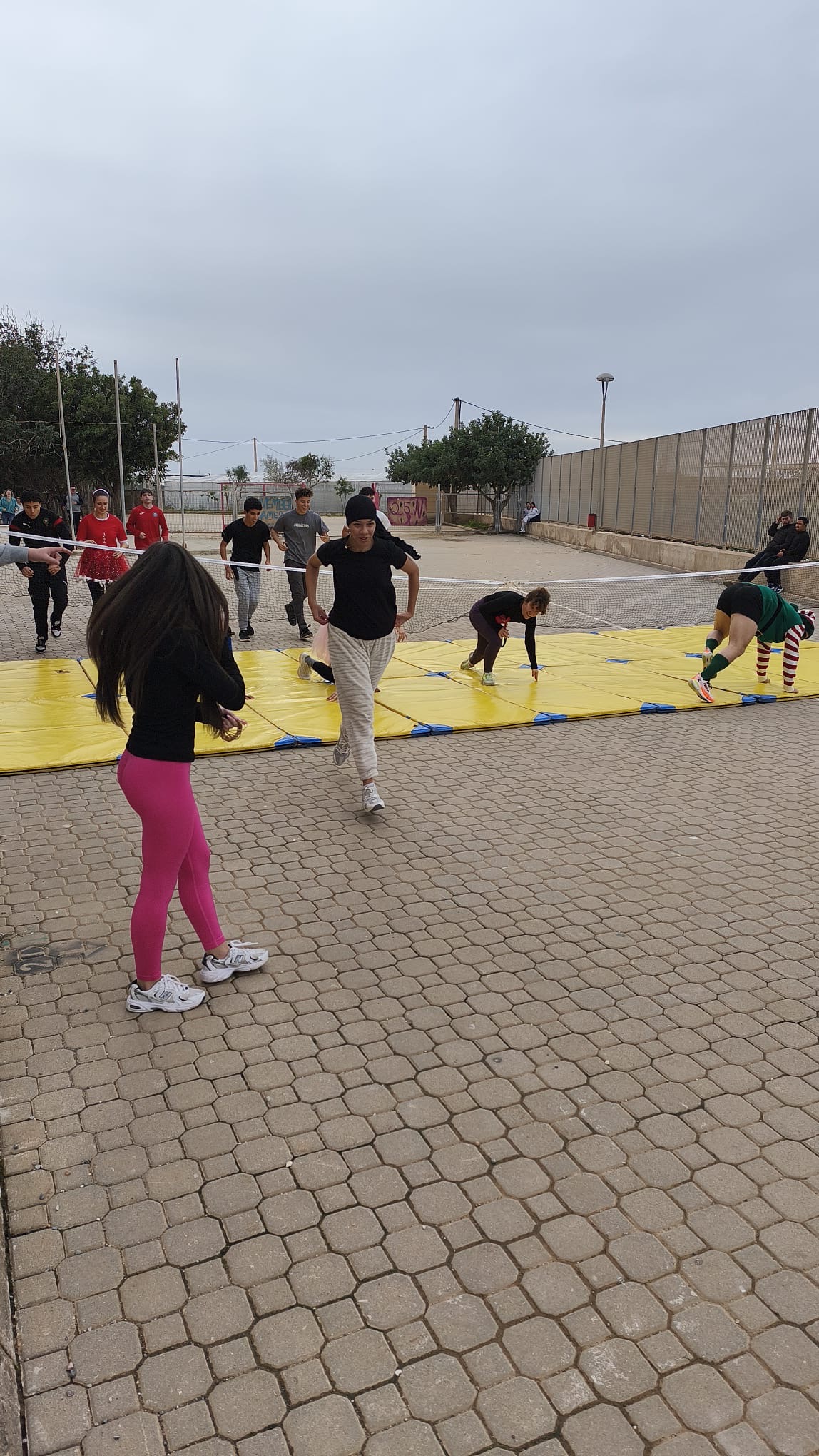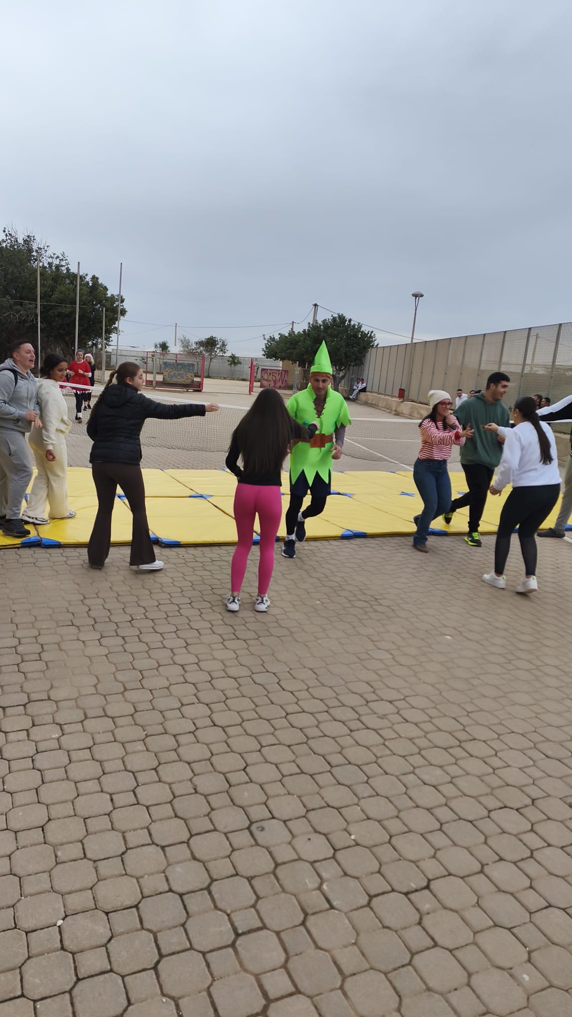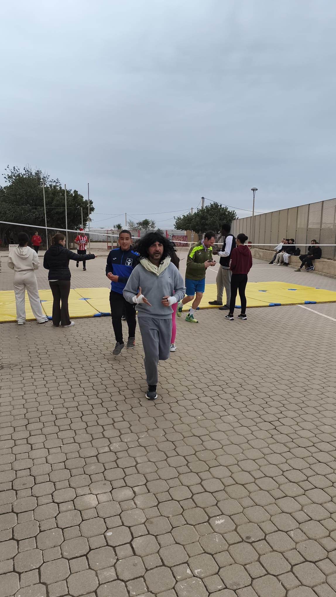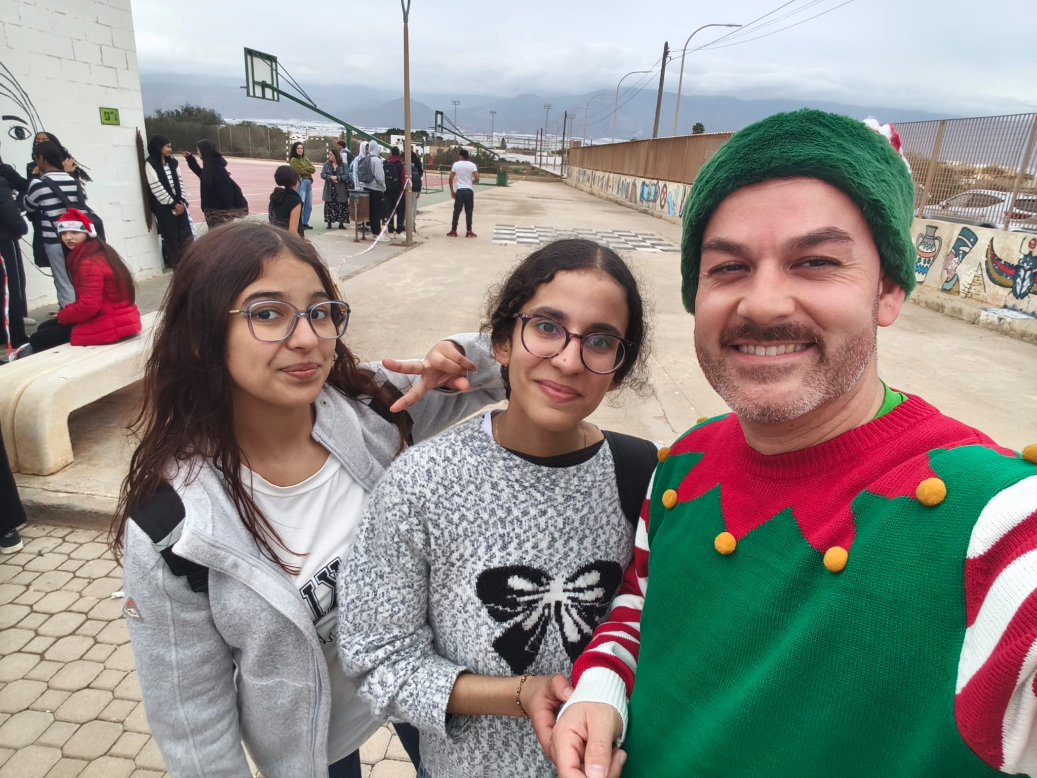 «Un año más, el centro organiza la Carrera San Silvestre el último de día de clase antes de las vacaciones de Navidad. Se trata de la tercera edición, donde el alumnado y el personal del centro se han disfrazado para echar un buen rato y participar en esta actividad de convivencia diferente y divertida. Además hubo premios al mejor disfraz y al más rápido. Agradecimiento especial al departamento de Educación Física por organizar el recorrido incluyendo algunos obstáculos para disfrutar aún más del evento.»