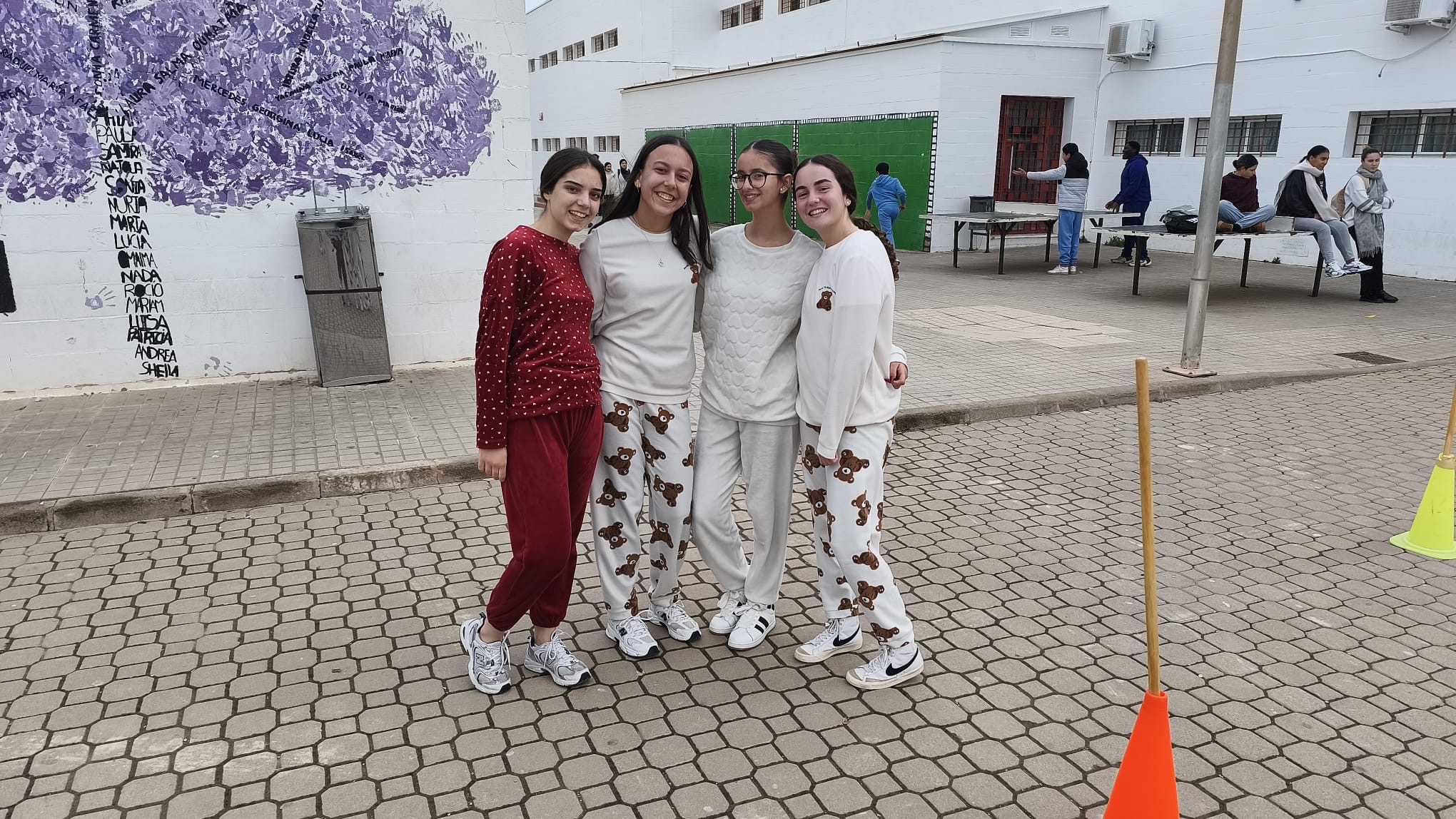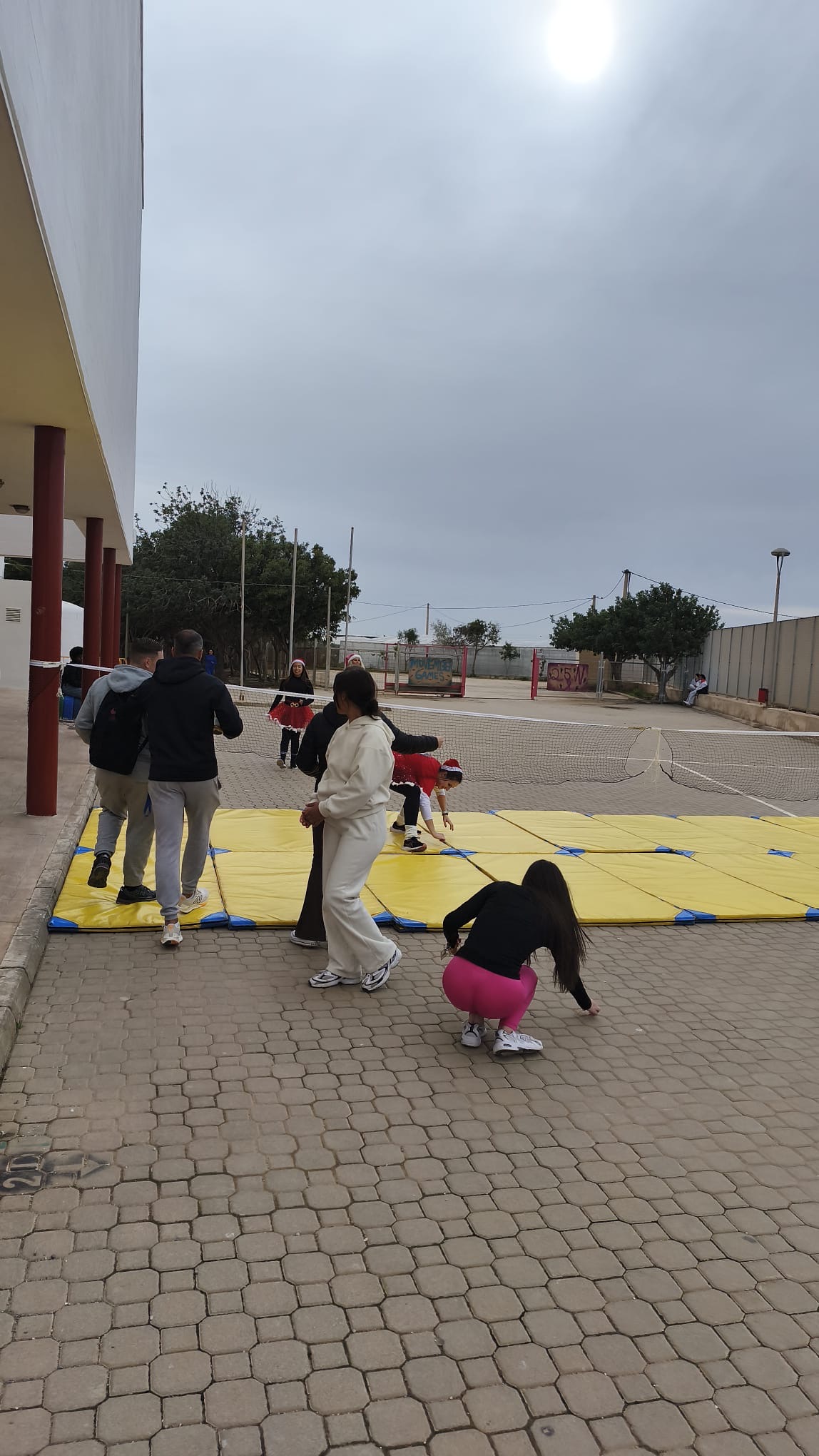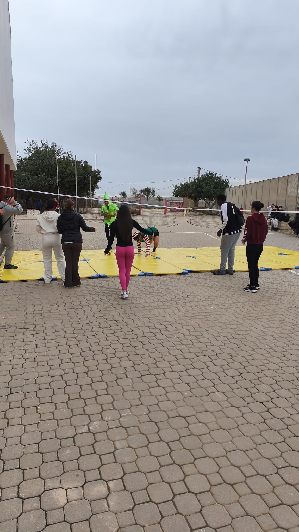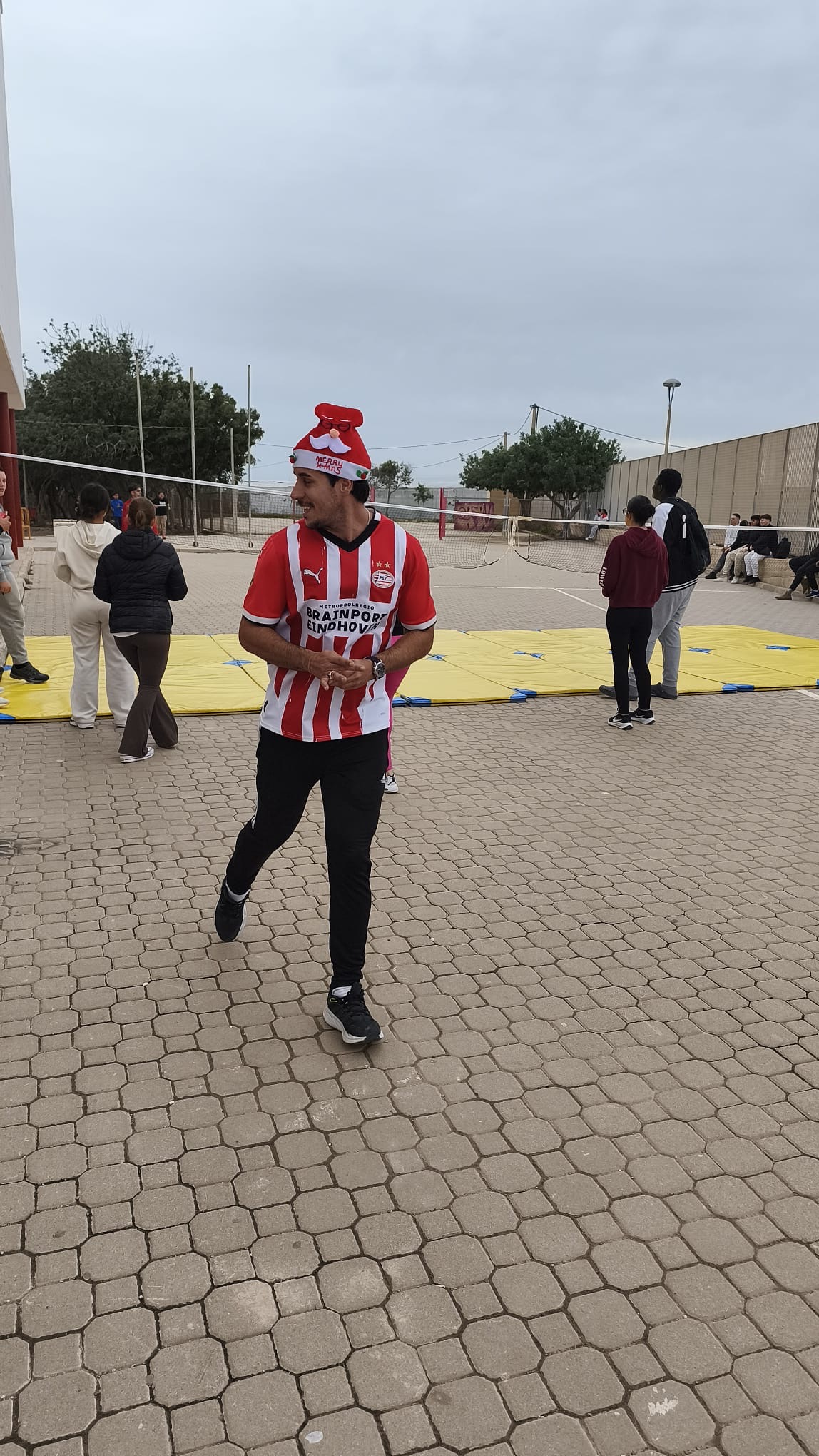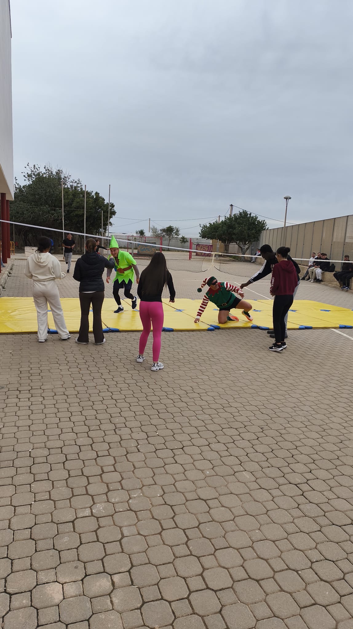 «Un año más, el centro organiza la Carrera San Silvestre el último de día de clase antes de las vacaciones de Navidad. Se trata de la tercera edición, donde el alumnado y el personal del centro se han disfrazado para echar un buen rato y participar en esta actividad de convivencia diferente y divertida. Además hubo premios al mejor disfraz y al más rápido. Agradecimiento especial al departamento de Educación Física por organizar el recorrido incluyendo algunos obstáculos para disfrutar aún más del evento.»