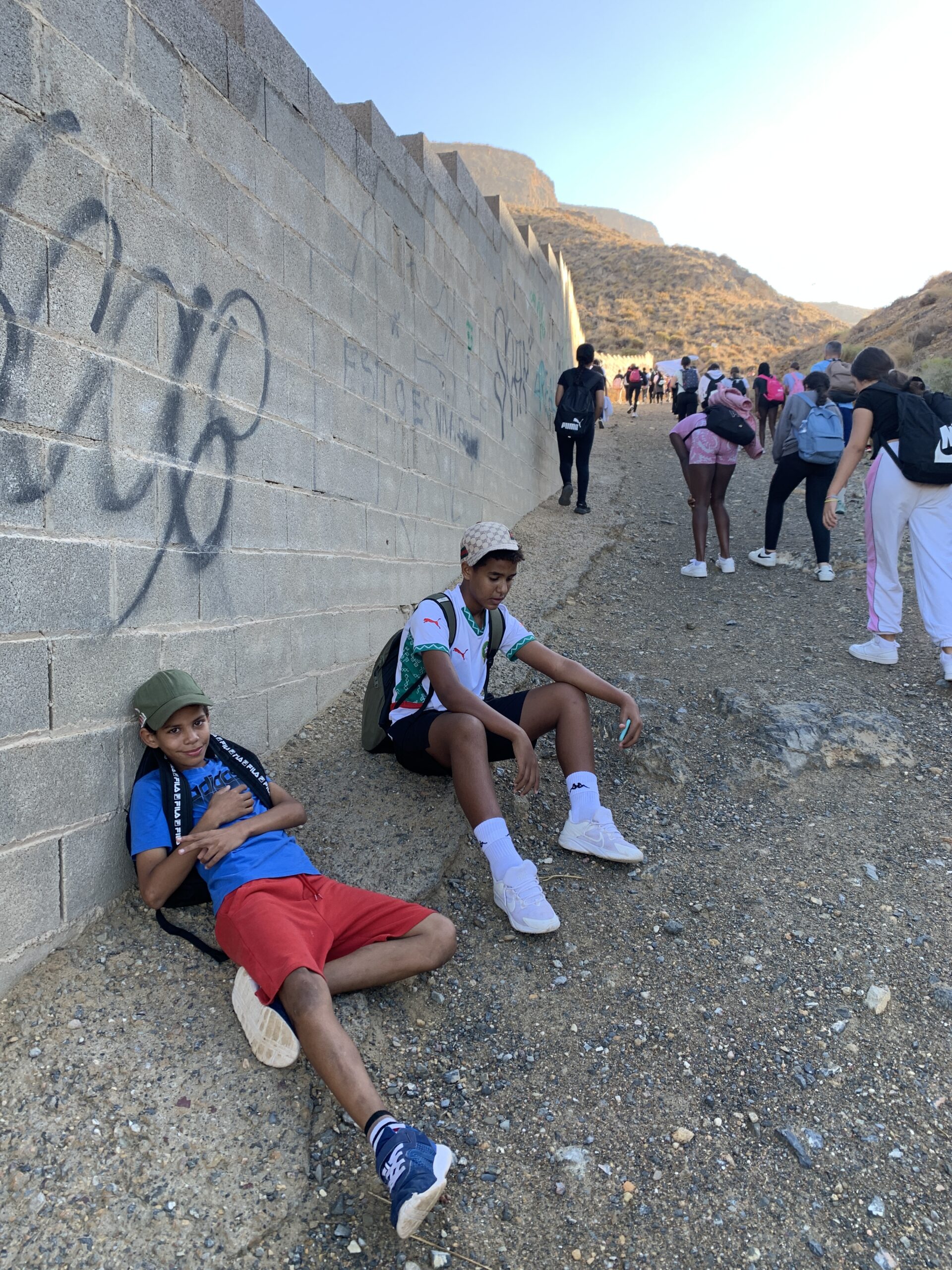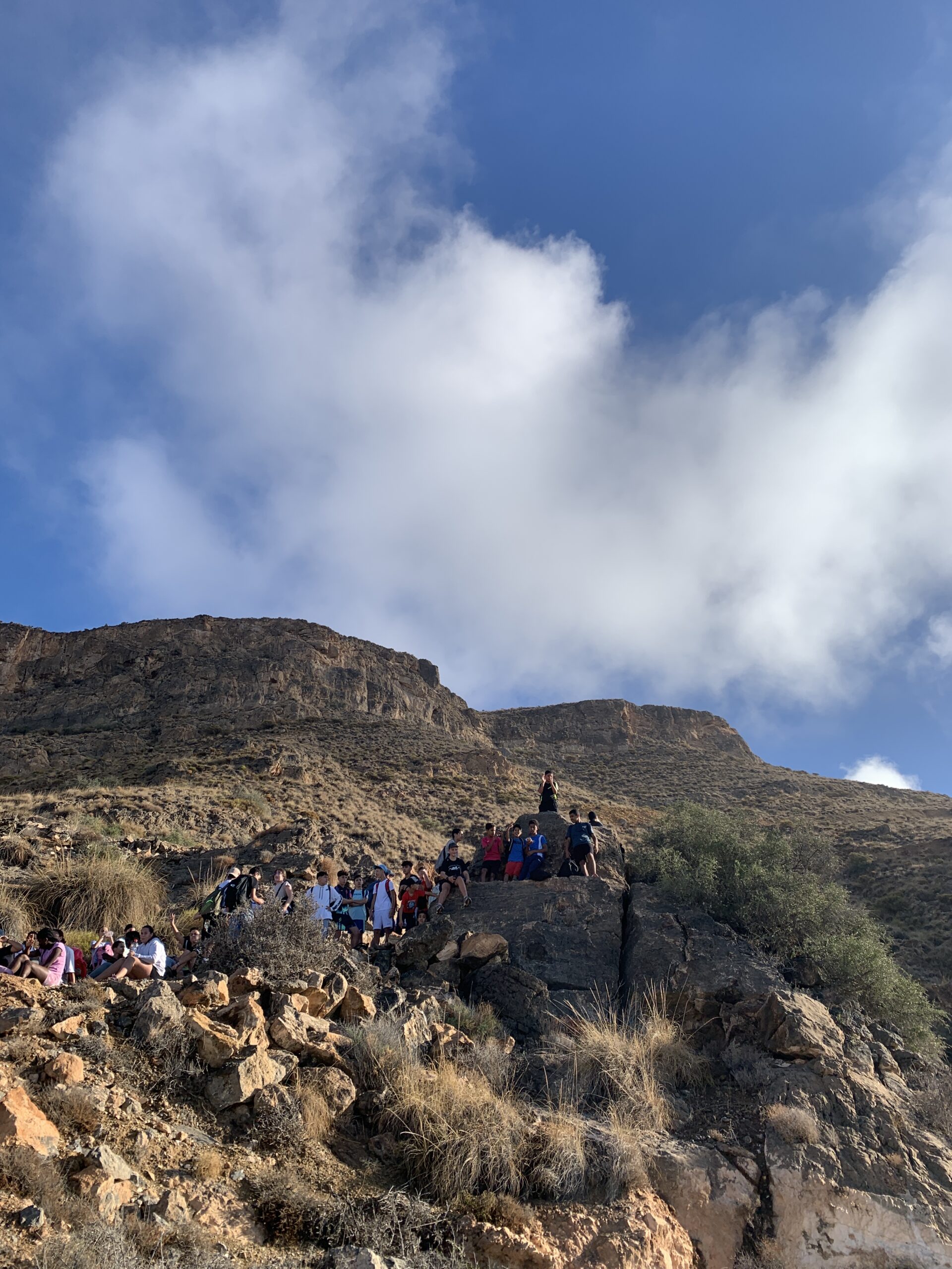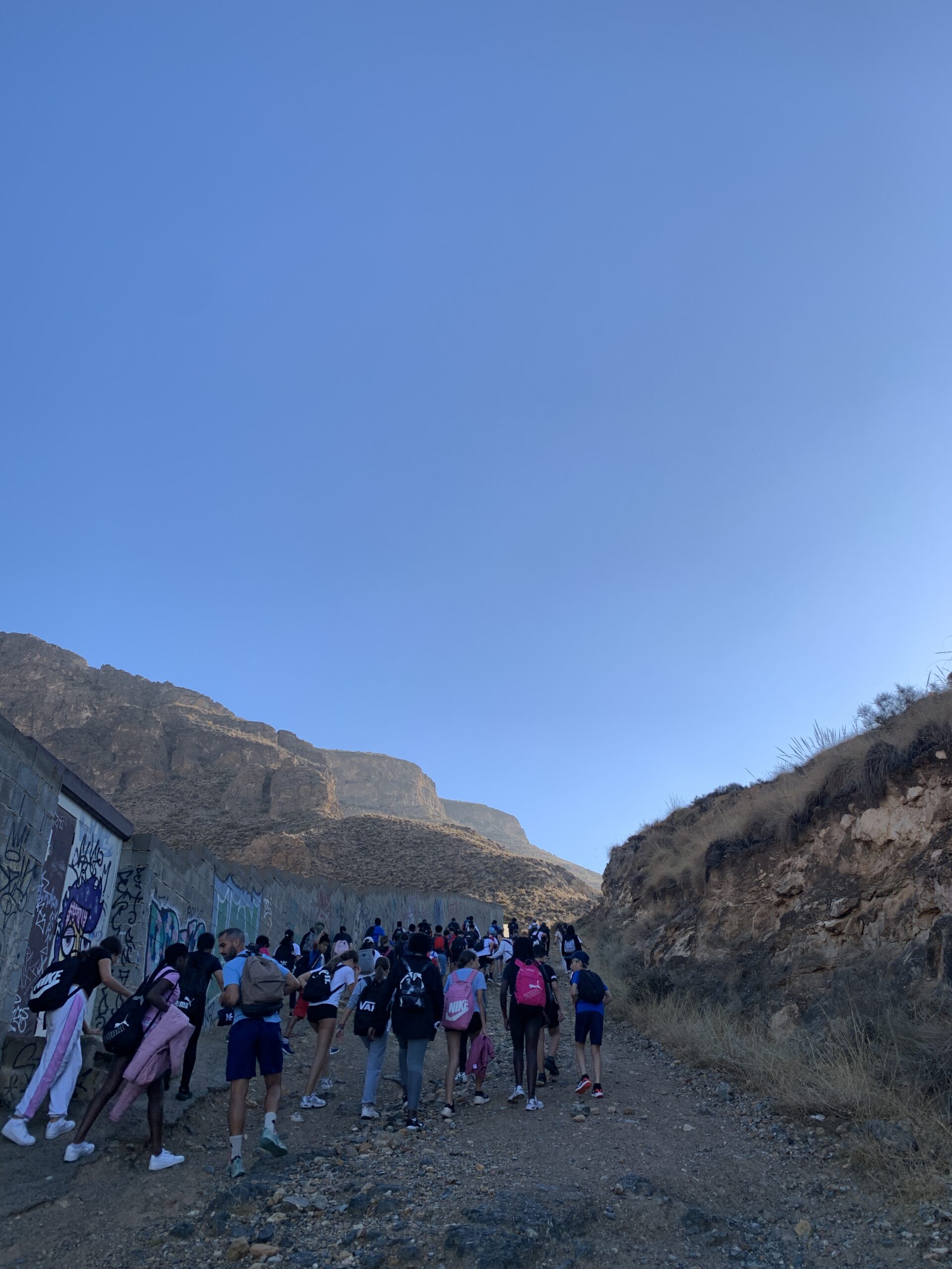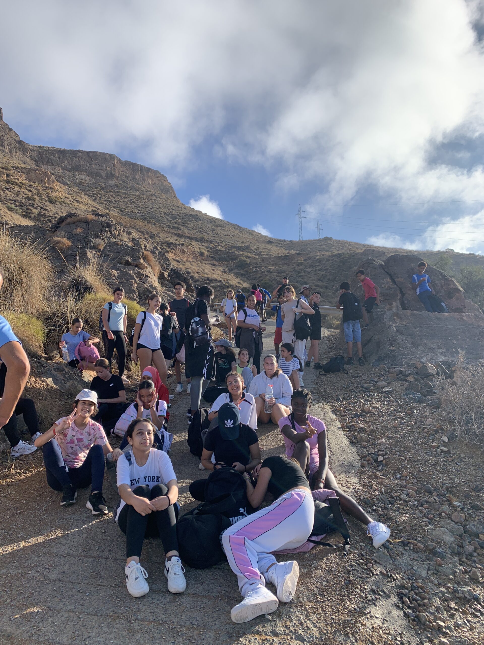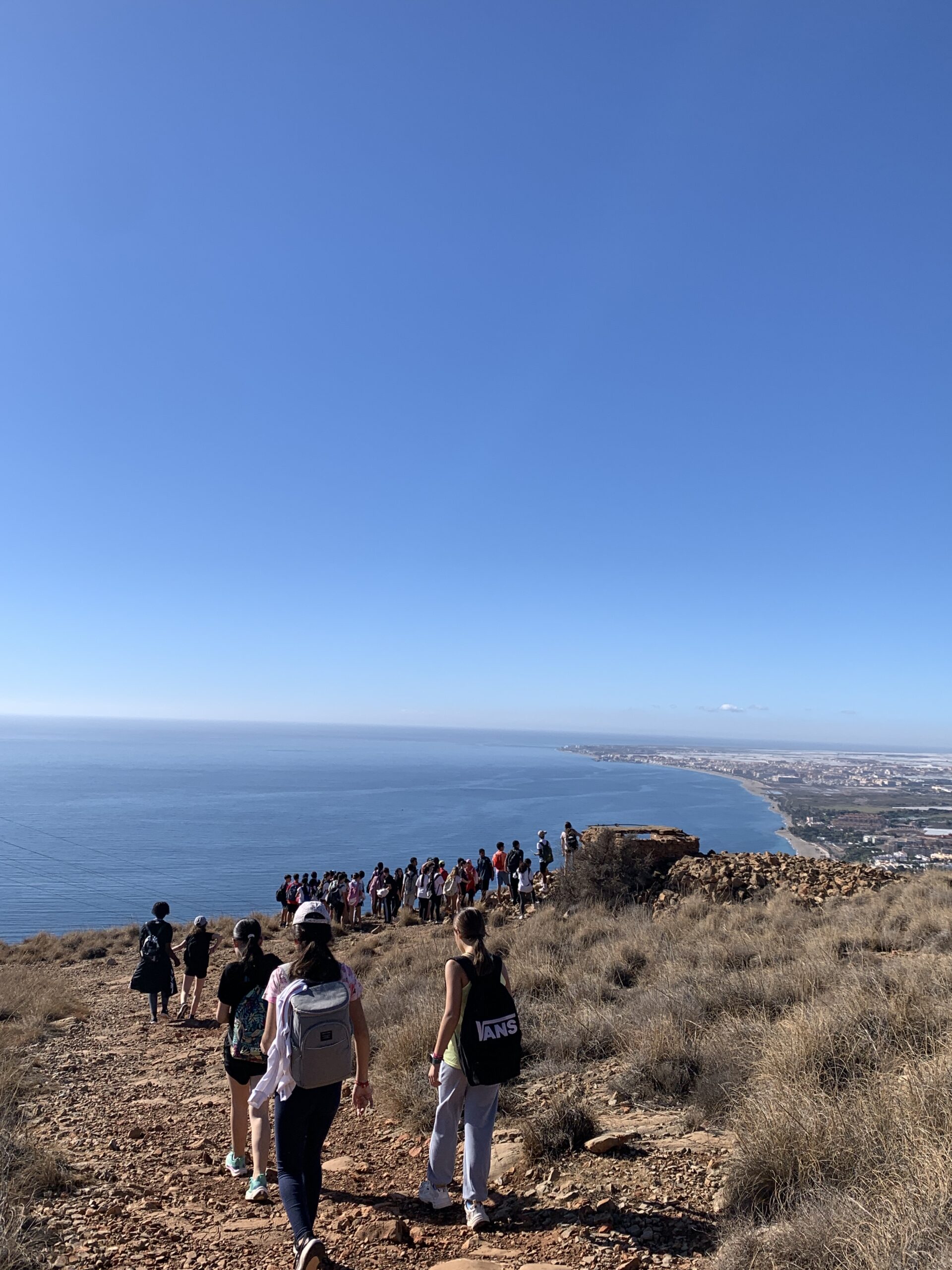 Hemos realizado un recorrido de casi 9 km en total, en el que hemos visto las Antenas y las vistas, a continuación hemos visitado los bunker que hay de la guerra civil, donde hemos desayunado. A continuación, hemos bajado deshaciendo el camino y atravesando Aguadulce, hasta llegar al Parque Municipal de Aguadulce, donde hemos realizado diferentes juegos como el pilla pilla, competiciones de tenis de mesa, petanca, entre otros. Ya sobre las 13:45 h. hemos cogido el autobús que nos ha llevado de vuelta al centro educativo sobre las 14:15 h.